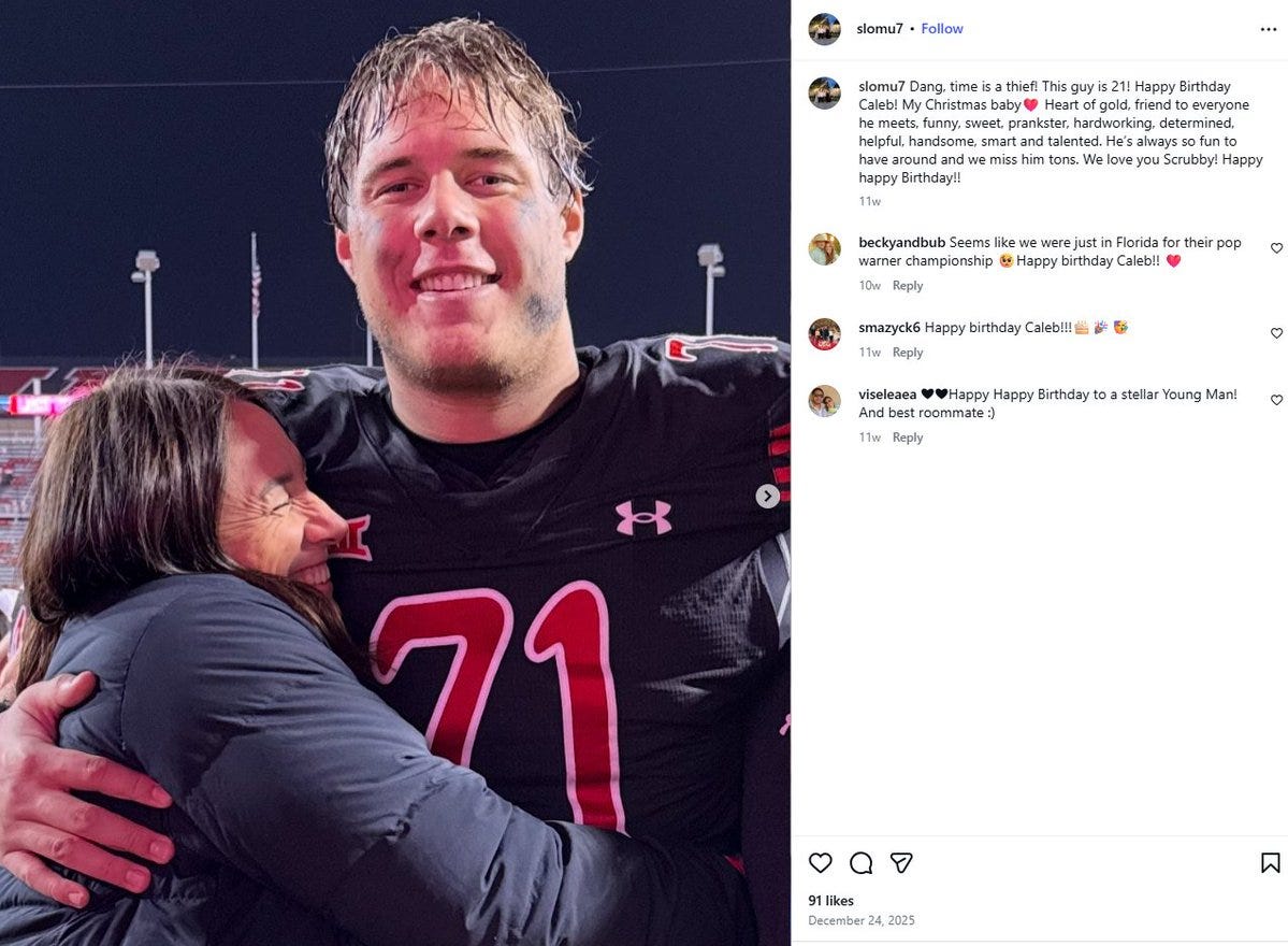 Age update: Caleb Lomu’s mom appears to confirm that he turned 21 in December 2025. That makes him a young prospect as he will be 21 entering the 2026 season. Credit @TwistedFocus99 for the tip.