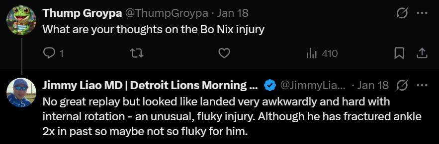 While there has been plenty of rightful consternation about the Lions injuries, it’s important to recognize the positives. The Lions completely avoided an ACL tear during the 2025 season. NFL teams average 1-2 per season.