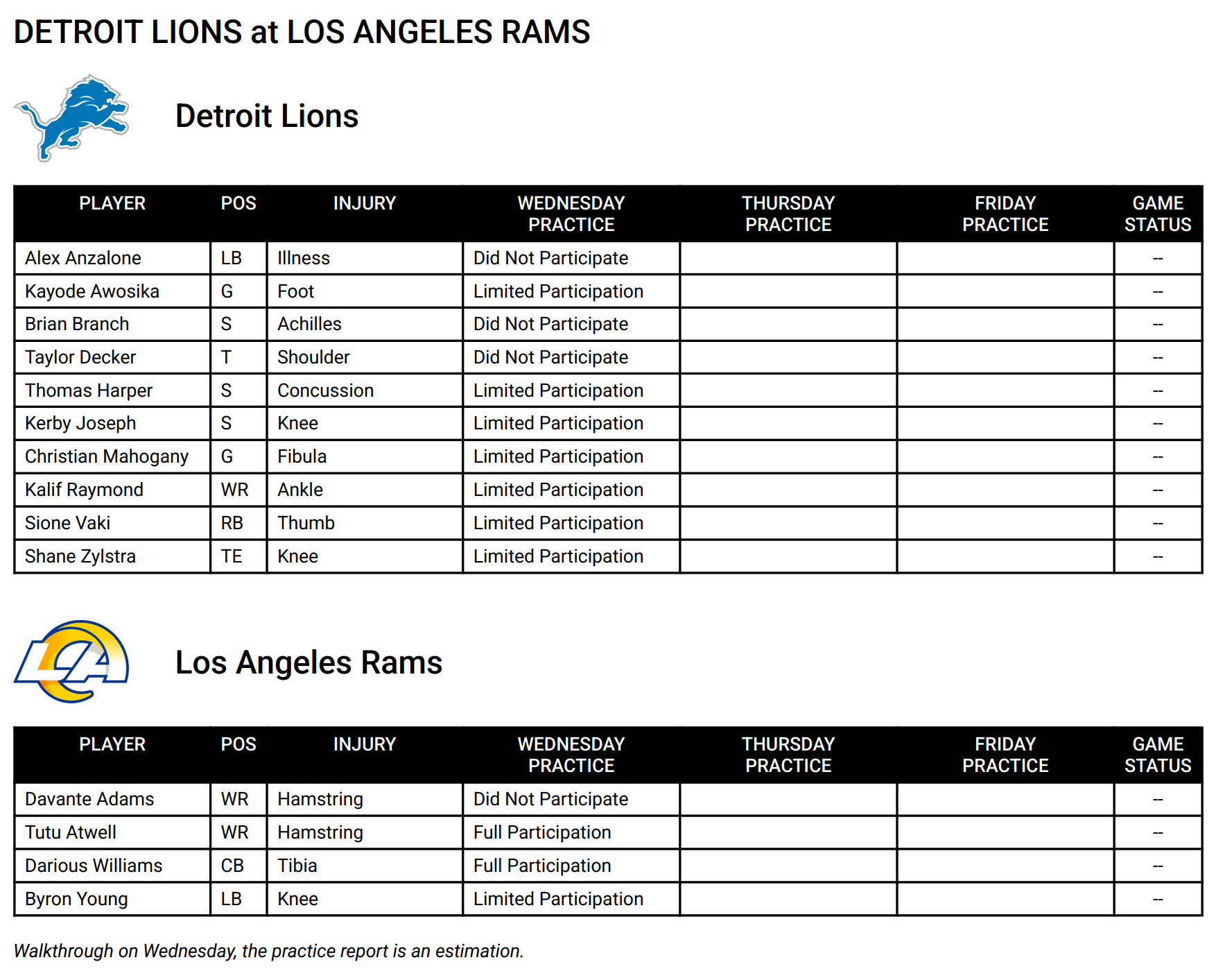 The Lions start their trek towards the playoffs with a game against the current #1 seed in the NFC - the Rams. While the Rams are sailing smoothly into the playoffs, the Lions will have to overcome some rough waters to get there.