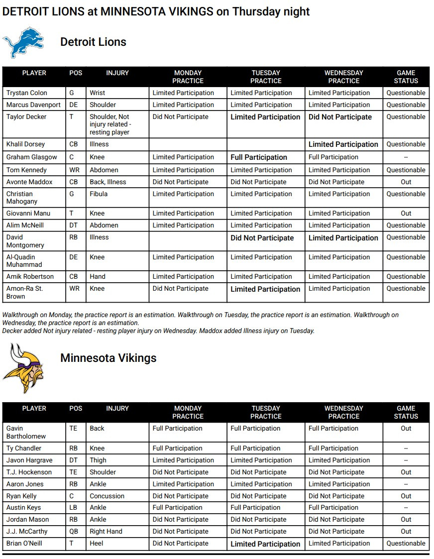 Lions vs Vikings - FINAL injury report (Week 17, 2025)